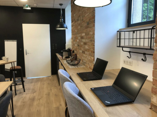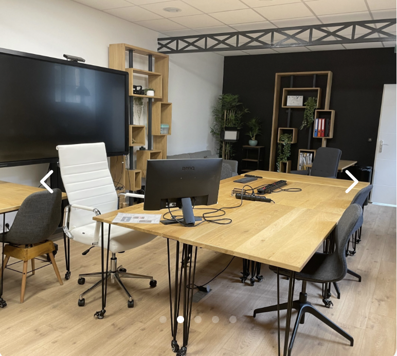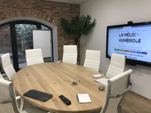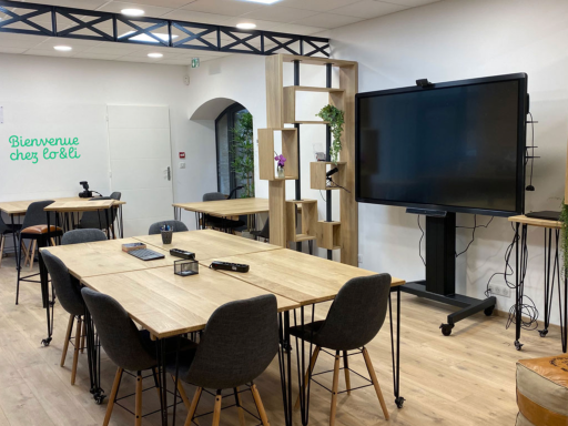 Salle de pédagogie active avec mobilier entièrement modulable, écran interactif, mur d’écriture mais aussi espace de convivialité avec canapé, frigo, thé, café …Salle de réunion, de formation ou de visioconférence avec sa grande table ovale, l’écran interactif et toujours un espace de convivialité.