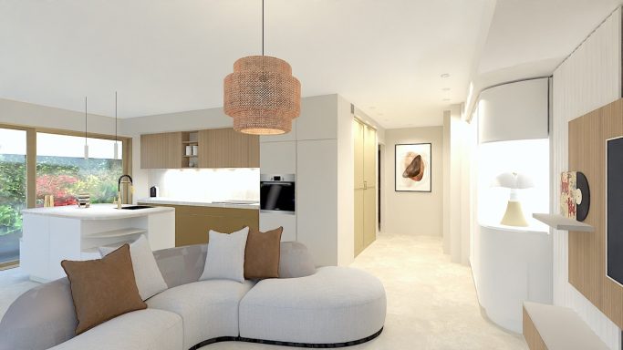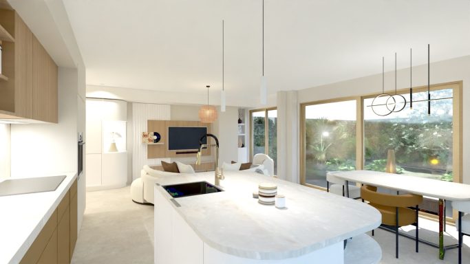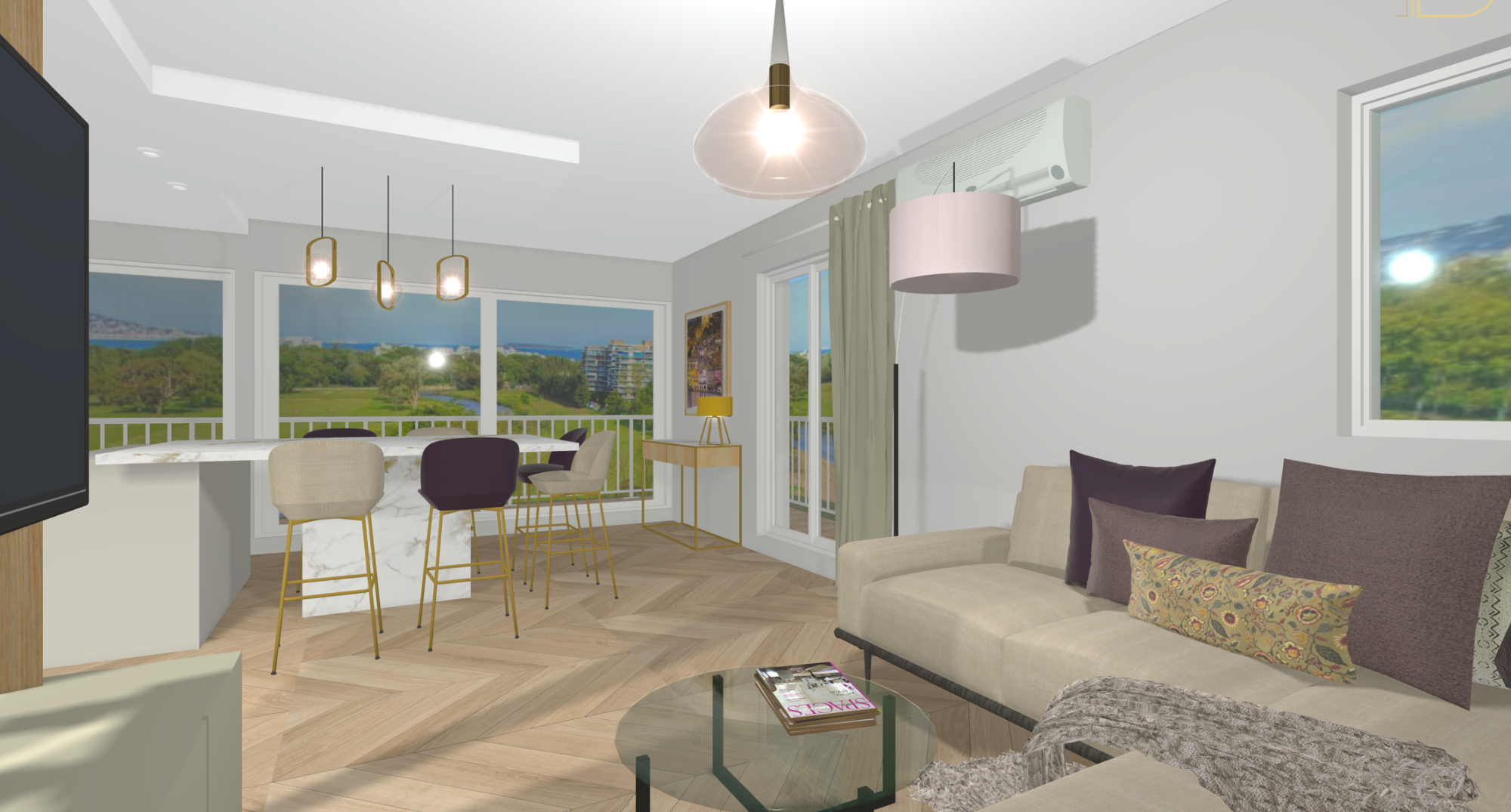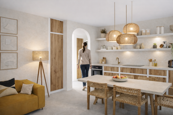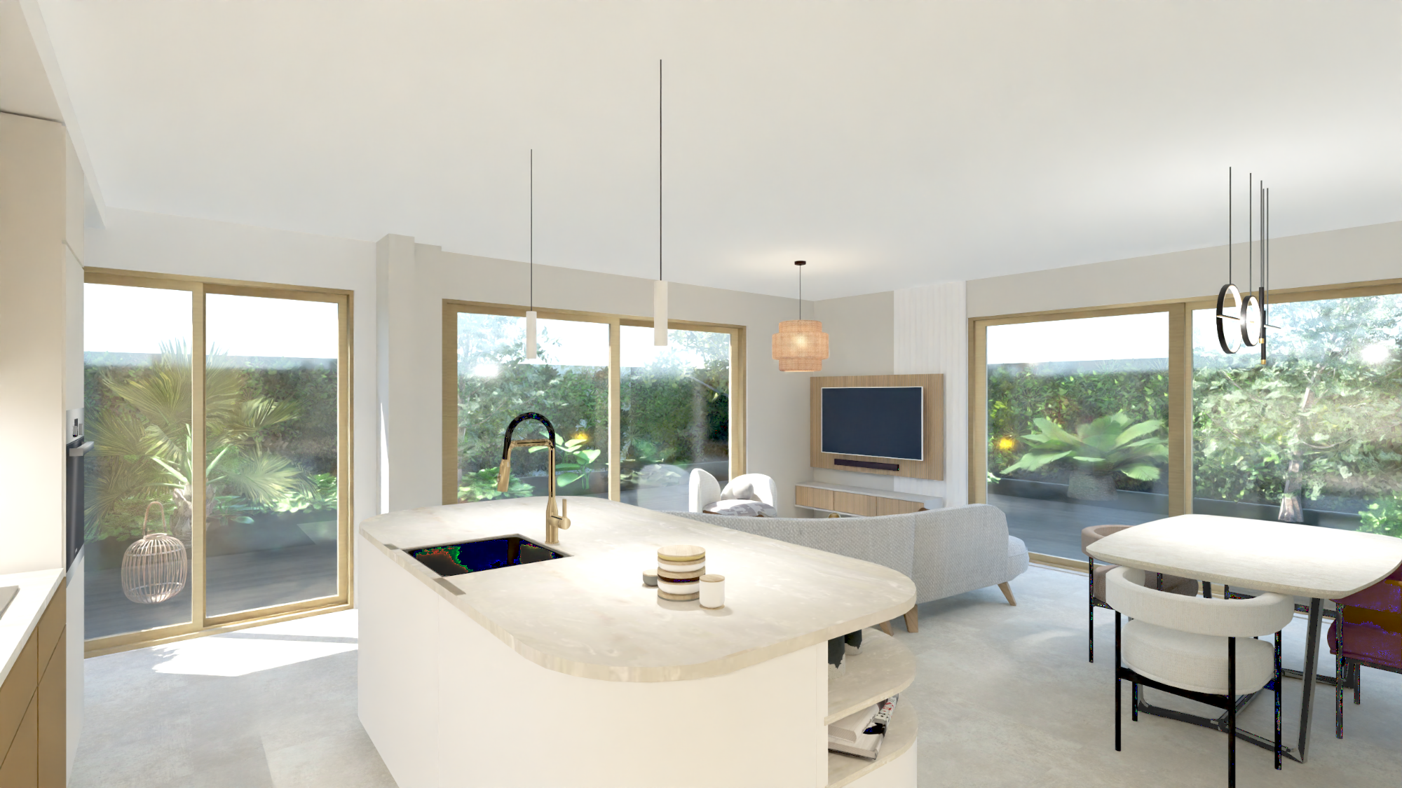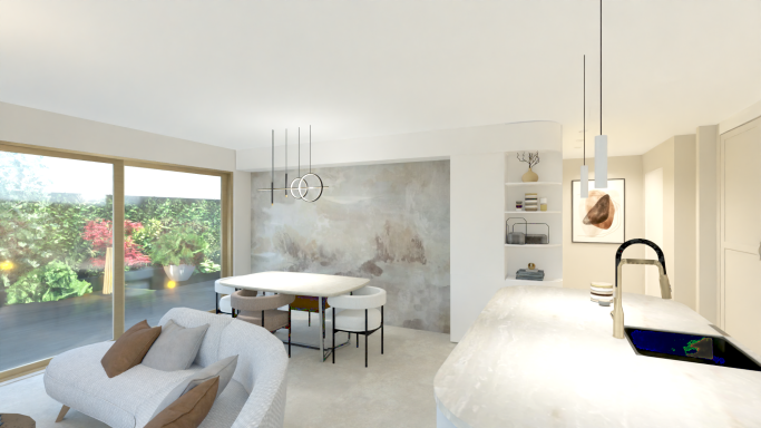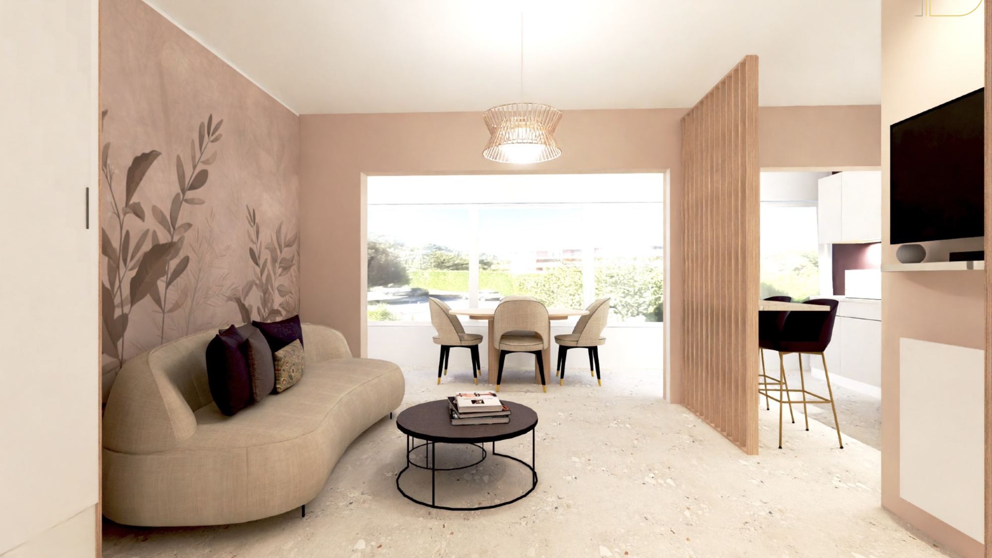 Les vues 3D permettent de saisir l'essence de cet espace, où le confort rencontre la convivialité, le design de mobilier et l'ambiance recherchée. Les volumes et les distances sont réelles et reflètent votre futur intérieur avec la plus grande fidélité.